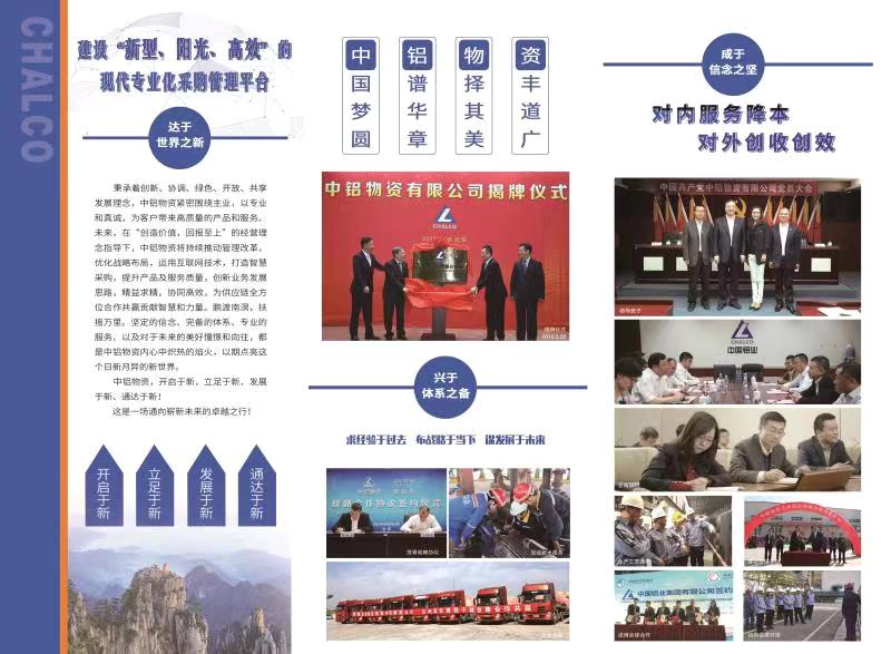 作为中铝股份集中采购执行单位,中铝物资秉承创新、协调、绿色、开放、共享发展理念,将通过不断完善集中采购管理机制、供应保障机制、质量管控机制、采购信息化建设,不断提升资源统筹能力、集中采购能力、质量管控能力、供应保障能力和成本控制能力,打造国内领先、国际一流供应链管理体系。